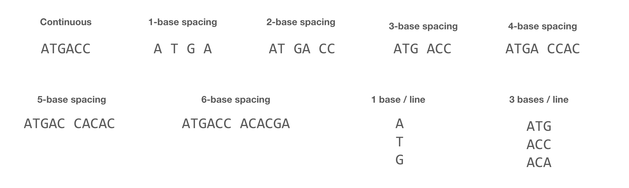 - Vary the spacing of characters in the DNA string